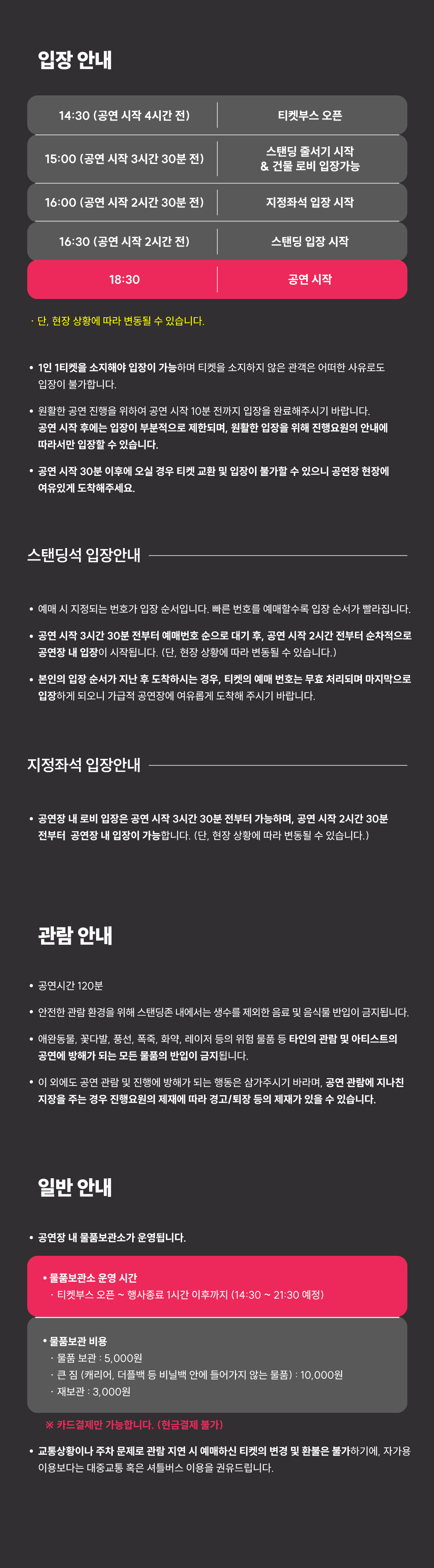 | Booking fee | 2000 KRW | Ticket delivery price | Pick up at venue |